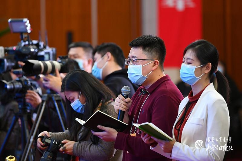 1月27日晚,自治區(qū)十三屆人大四次會(huì)議“代表通道”集中采訪活動(dòng)在內(nèi)蒙古人民會(huì)堂玻璃廳舉行,8位人大代表分兩組“亮相”。這是自治區(qū)人大首次開(kāi)通“代表通道”。圖為人民網(wǎng)記者在提問(wèn)。內(nèi)蒙古日?qǐng)?bào)記者 金泉 攝