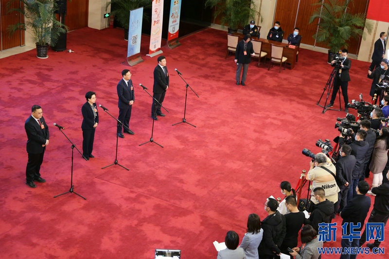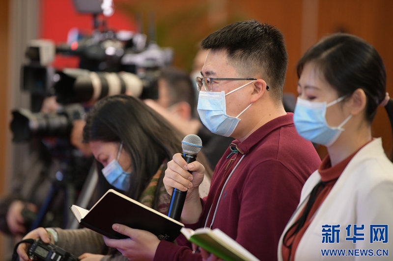媒體記者在“代表通道”上提問(wèn)。新華網(wǎng) 曹楨攝