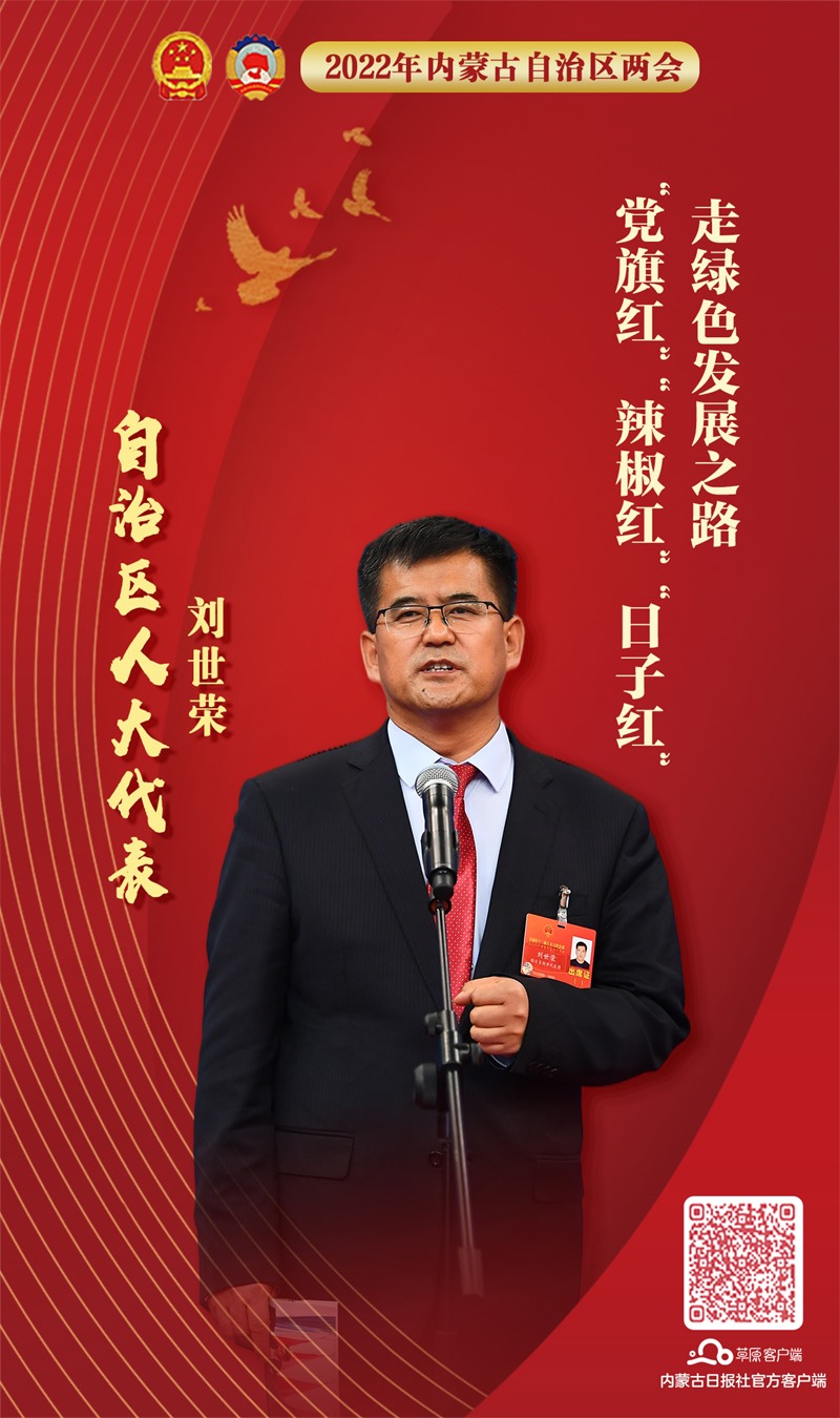 從昔日的沙窩窩到成為如今遠近聞名的美麗鄉(xiāng)村,自治區(qū)人大代表、鄂爾多斯市達拉特旗展旦召蘇木道勞村黨支部書記、村委會主任劉世榮和大家分享了23年來,道勞村是怎樣推動農畜產品生產基地優(yōu)質高效轉型,走出一條符合道勞實際的綠色發(fā)展之路的。他用“三個紅、一個綠”描述了今天的道勞村,即“黨旗紅”“辣椒紅”“日子紅”,走綠色發(fā)展之路。