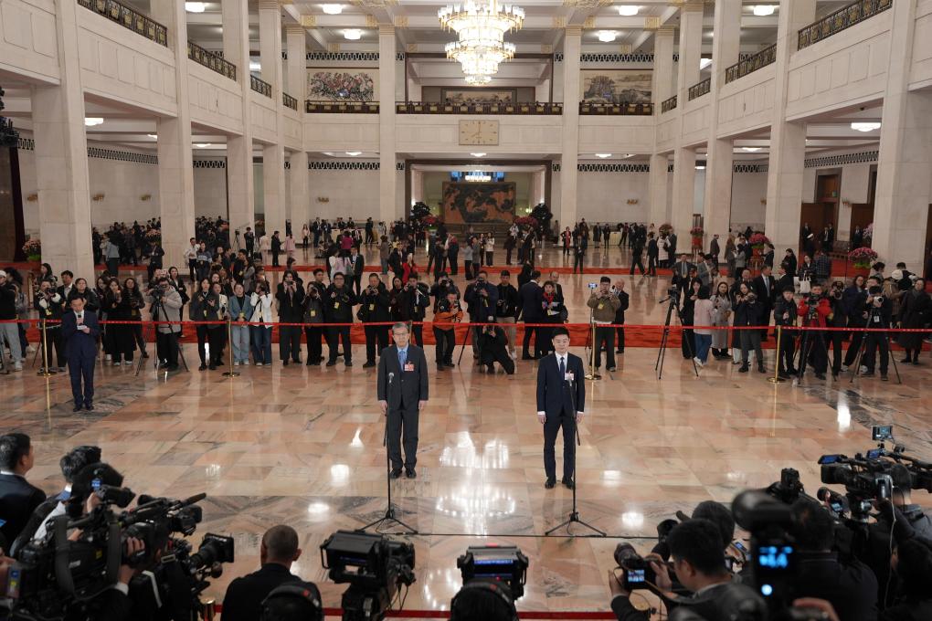 3月5日,第十四屆全國人民代表大會第四次會議首場“代表通道”集中采訪活動在北京人民大會堂舉行。