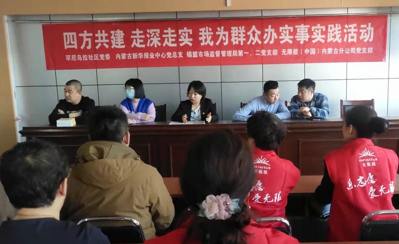 北疆新聞網(wǎng)、北疆新聞APP、北疆云消息 為慶祝中國共產(chǎn)黨成立100周年,將“我為群眾辦實事”落到實處,12月8日,內(nèi)蒙古新華報業(yè)中心黨總支、無限極(中國)內(nèi)蒙古分公司黨支部,聯(lián)合罕尼烏拉社區(qū)黨委、錫林浩特市市場監(jiān)督管理局第一、第二黨支部,走進錫林浩特市罕尼烏拉社區(qū),開展“四方共建 走深走實 我為群眾辦實事”主題實踐活動。20名黨員干部與志愿者代表齊聚一堂,開展黨史學習,重溫紅色歷史,并針對優(yōu)化營商環(huán)境、黨建經(jīng)驗進行了互動交流,共話黨建工作的重要意義。座談會上,黨員干部暢所欲言,氣氛熱烈。