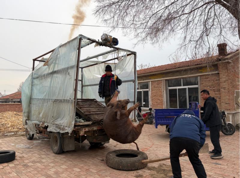 天蒙蒙亮,奈曼旗新鎮(zhèn)朝古臺村浸在冬日干冷的寒氣里,仿佛最后一絲熱氣也被寒風(fēng)吹跑了。臨近新春,天地茫茫大雪覆蓋,正是吃殺豬菜的好日子。村民王國春家的煙囪吐出第一縷比晨星更早醒來的青煙。院落一角,大鐵鍋坐上灶臺,清水將滿未滿,映著天邊一彎將落未落的月亮。