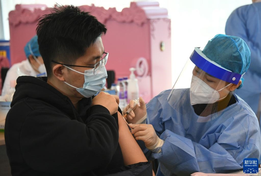 2021年12月7日,北京市海淀區(qū)上地街道組織醫(yī)護(hù)人員來(lái)到海國(guó)瑞業(yè)科技園,為園區(qū)內(nèi)的企業(yè)員工進(jìn)行新冠疫苗加強(qiáng)針接種。新華社記者 任超 攝
