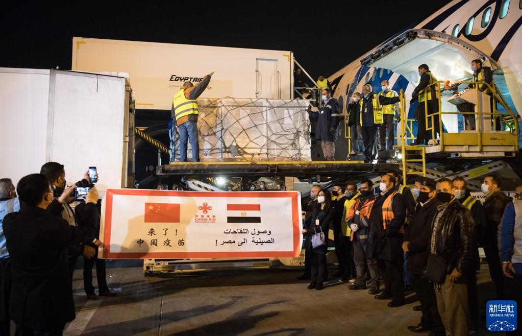2021年2月23日,中國(guó)援助埃及的首批新冠疫苗抵達(dá)埃及開(kāi)羅國(guó)際機(jī)場(chǎng)。新華社記者 鄔惠我 攝