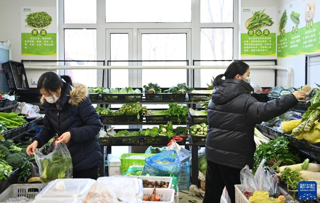 1月11日,居民在天津市西青區(qū)中北鎮(zhèn)一小區(qū)的商店內(nèi)選購(gòu)蔬菜。新華社記者 李然 攝