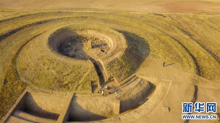 這是10月25日拍攝的呼和浩特市武川縣境內(nèi)的北魏皇帝祭天遺址發(fā)掘現(xiàn)場(無人機照片)。新華社記者 彭源 攝 -