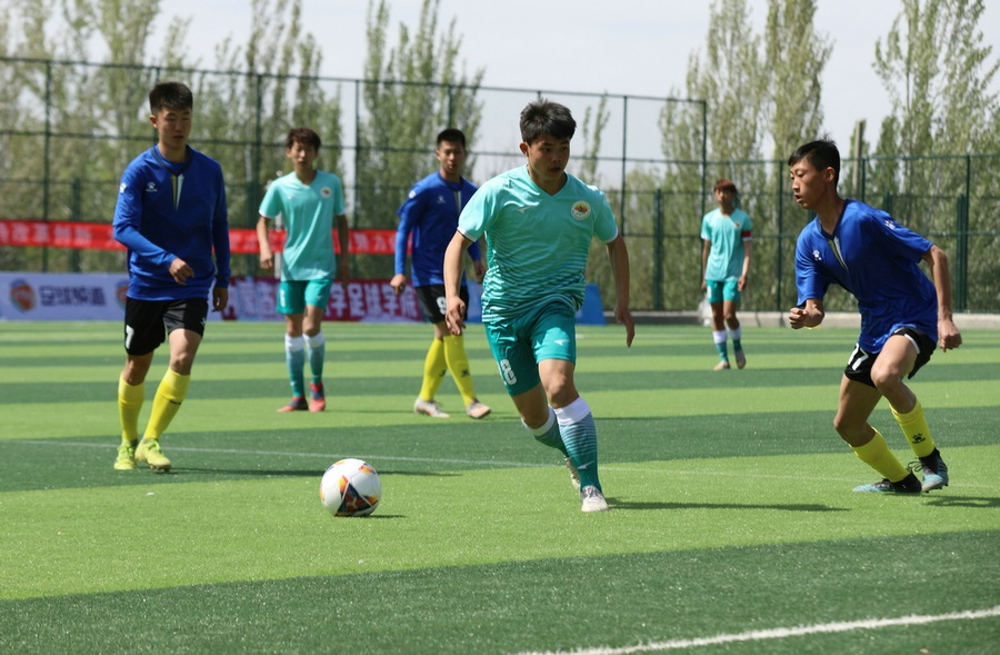 5月10日-17日,2021年內蒙古自治區(qū)青少年足球聯(lián)賽暨青少年足球錦標賽在內蒙古師范大學足球學院舉行。此次比賽,共有來自全區(qū)各盟市的31支代表隊參賽,各代表隊以盟市為單位組隊報名,通過比賽,將進一步探索主客場聯(lián)賽賽制,檢驗各地區(qū)足球青訓體系建設成效,活躍校園足球文化,以期發(fā)現(xiàn)和選拔更多優(yōu)秀足球運動員。圖為比賽揭幕戰(zhàn)現(xiàn)場,烏海代表隊對陣鄂爾多斯代表隊。