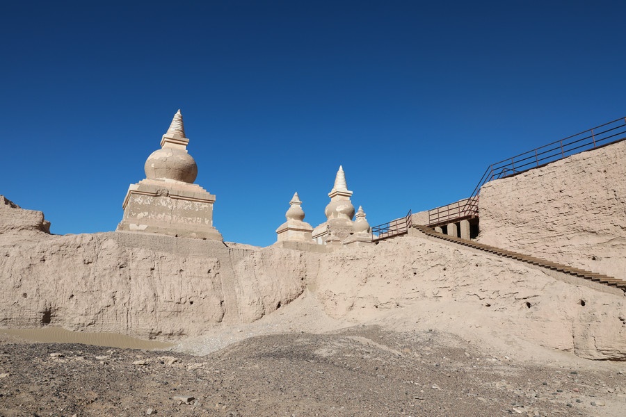 1372年,黑城被明朝大將馮勝所破,城址從此荒廢。邊塞詩人王維《使至塞上》“單車欲問邊,屬國過居延”中的居延,寫的就是這里的景象,“大漠孤煙直,長河落日圓”也因此成為千古名句。但誰又能想到,曾經(jīng)的居延綠州,會因為當(dāng)年弱水(黑河,現(xiàn)額濟納河)的斷流而變成蒼茫大漠。更令人痛心的是,在城址荒廢500多年后,一群打著探險的旗號的“強盜”蜂擁而至,對黑城進行了瘋狂盜挖,大量西夏和蒙元時期的珍貴文物流失海外,成為國人心中永遠的痛。近年來,內(nèi)蒙古加大了黑城的保護力度,希望籍此能夠早日重現(xiàn)昔日綠洲。
